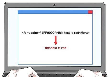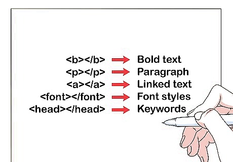 (paragraph), (anchor, which defines linked text), and (font, which can help define various attributes of the text, like size and color). Other tags define the different parts of the HTML document itself. For example, is used to contain information about the page that will not be visible to the viewer, like keywords or a page description that would appear in search engine results.Learn to use tag attributes. Some tags need additional information to specify how they should function. This additional information appears within the opening tag, and it is called an “attribute.” The attribute name appears immediately after the tag name, separated by a space. The attribute value is attached to the attribute name by an = sign and surrounded by quotation marks. For example, if you wanted to make some of your text red, you could do it by using the tag and an appropriate font color attribute, like this: This text is red. Many of the effects that were once routinely achieved with HTML tag attributes, such as setting different font colors, are now typically done with CSS coding instead.