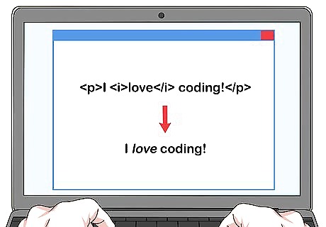 Experiment with nested elements. HTML also allows you to place elements within other elements in order to create more complex formatting. For example, if you wanted to define a paragraph and then italicize some of the text within the paragraph, you could do it like this: