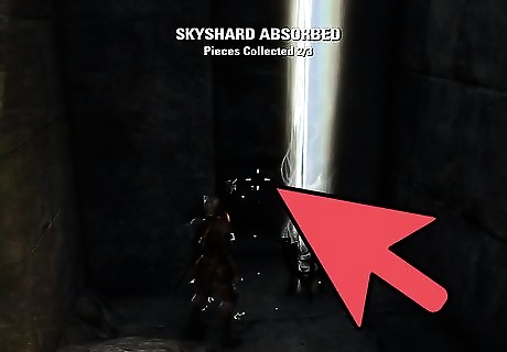 Activate the Skyshards. Once you see a Skyshard, activate it by clicking on it in order to harness its power. Don't worry if you see someone else at the site: one person absorbing a Skyshard does not stop another from doing the same.