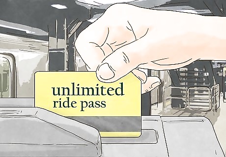 Buy a weekly or monthly unlimited ride pass. Buying an unlimited ride pass is a much more affordable alternative to paying per ride if you use the bus or subway often. For example, your cost for a single ride is currently $2.48 cents. If you ride 60 times per month, you would pay $148 per month. A 30 day unlimited pass would only cost $116 per month, generating significant savings for you. If you ride more than 60 times per month, your cost per ride is even lower because you are spreading more rides across that same $116 per month cost. Therefore, the more you ride, the more you save with unlimited monthly passes.