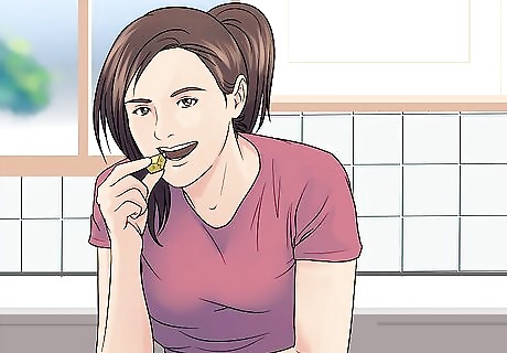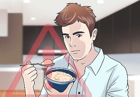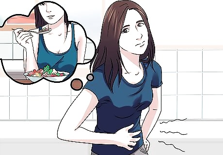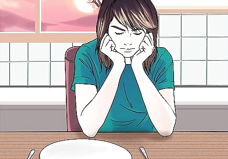 Prevent yourself from being starving before meals. If you've been practicing slower eating, you may notice that when you're really hungry or starving, its much harder to control the speed of your eating. Manage your hunger to help support slower eating times. Learn your hunger cues. If you get cranky, lightheaded or a light nauseous when you're starving, be mindful of these symptoms. These should signal an immediate need for fuel to help prevent you from overeating at your next meal. Also pay attention to the timing of your meals. For example, if lunch is at 12 and dinner isn't until 7:30 pm, you most likely won't make that length of time without becoming overly hungry or starving. Plan a snack or a small meal in between meals that are far apart to help you manage your hunger levels more appropriately.
