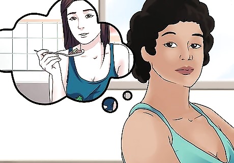 Stop eating when you're satisfied. One thing that eating slowly can help you understand is when you're satisfied versus when you're full. This is also called "intuitive eating;" you listen to your body and eat when it's hungry and stop when it's full. This can help you with your weight loss. When you eat more slowly, you're more likely to eat less food overall. This is because your brain and gut communicate when you've eaten enough food to be satisfied. If you eat really fast, you're more likely to eat until you're full. Stop eating when you're satisfied instead of when you're full. This will help you cut out any unnecessary calories in your meals. Satisfied feels like a lack of hunger, a slight disinterest in your food or knowing you could have a few more bites but then you'd be full. Being full feels more like a stretching, stuffed feeling. Try to avoid eating to this point as much as possible.