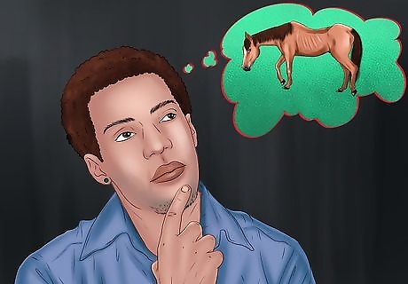 Try to understand why your horse is thin. If your horse is too thin, there are a variety of reasons that they may not gain weight easily. Not all of the reasons are due to the horse's health either. Just like humans, some horses have faster metabolism than others, and thus, have a hard time keeping on weight. Have your horse examined by a veterinarian, especially if they seem to have lost weight recently for no obvious reason. They may be able to point to an underlying cause of the weight loss or with difficulty putting on weight. Be sure to get your horse regular dental checks, too. The horse should have its teeth floated at least once a year to avoid sharp points and keep it comfortable. Horses with mouth sores are less likely to eat and may lose weight.