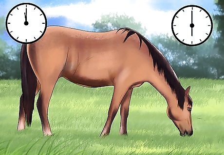 Limit your horse’s access to new spring grass. In the spring, the grass is highest in fructans, which are difficult for your horse to digest. Thus, it is important to adjust your horse to this grass slowly whether or not the horse is overweight. If you want your horse to lose weight, however, you should restrict your horse’s access to this grass between 12pm and 6pm. This is when spring grass is highest in sugar and carbohydrates.