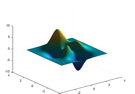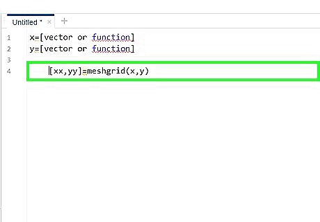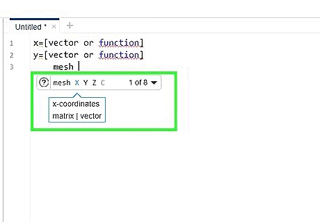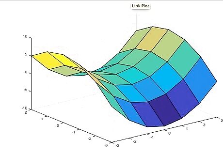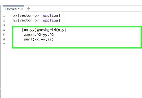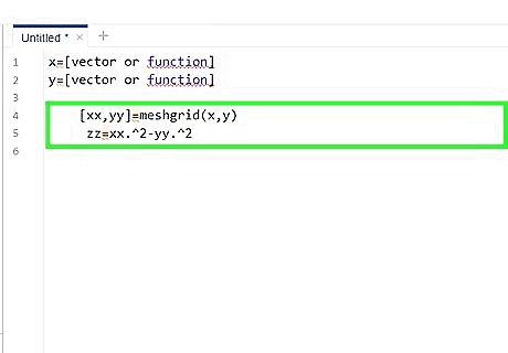 Define a relationship between x and y. In order to accomplish this, two commands must be used. The first is the mesh function. By using this, the result will be a wireframe mesh graph. The other is the surf function. When using surf, the result will be a 3-D surface plot.