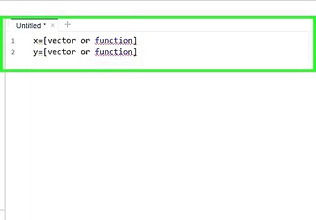 In the command window, define both of your x and y vectors. This is typically done in the form of x=[vector or function] and y=[vector or function] Remember to use the dot operator when multiplying or dividing vectors and matrices. Otherwise errors will occur.