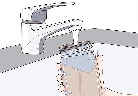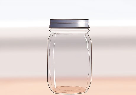 Choose a sturdy container with a secure lid. For your calm down jar, you can start with any safe, transparent container. Plastic containers will be your best bet, as they’re less likely to break and cause accidents. The container you go with should have a solid one-piece lid or cap that screws on and stays put. You can also use santix bottles for a nice toy, but make sure all bottle caps can be screwed on properly and tightly so no liquid will leak out that causes a mess.Tip: If your jar has a stubborn label on it, you may be able to soak it off with a little dish soap and white vinegar in warm water. Mason jars are a good place to start if you have older children that you trust to handle glass. Clear plastic containers are safer and better choices for younger children. Check your recycling for an empty plastic peanut butter jar, a sturdy water bottle, or a plastic juice or soda bottle. Many crafters recommend Voss or SmartWater bottles for their large size and smooth, sturdy construction. Other ideas include a sanitizer, squeeze, or corked bottle (for older kids because of glass shatters.)
