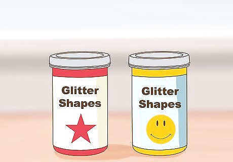 Add fun glitter shapes to make your jars more interesting. Purchase a special craft glitter to mix in with the regular glitter and glitter glue. When you shake the jar, you’ll be able to see smiley faces, stars, and dinosaurs floating around inside. This is a great way to add a more personal touch to the jar and encourage your child’s creative interests. Beads, small little toys that fit, or even moss for a bottom-of-the-ocean-feel.Tip: If you don’t like the idea of using synthetic glitter, try eco-friendly alternatives, such as mica glitter. Check craft supply stores for unique and interesting types of glitter.