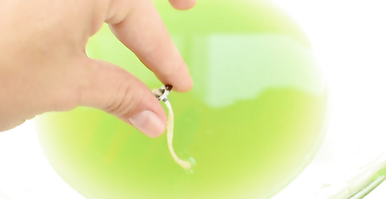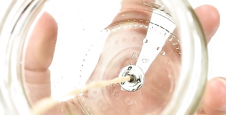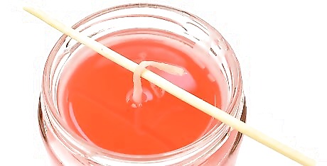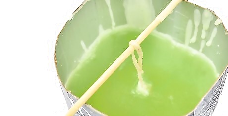 Stiffen the wick. As the wax melts, hold the wick by the base and dip the wick in and out of the wax quickly. Straighten the wick and allow the wax to dry. This will keep the wick straight and make it easier to position in the bottom of the candle jar.