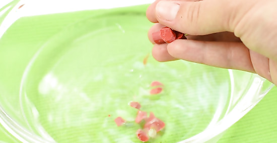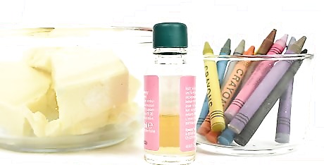 Add your color and scent. Chop your crayon of choice into small pieces. When the shortening is still hot, add the crayon and stir until the color has saturated the shortening. Allow the shortening to cool for about 10 minutes, then add your fragrance of choice.