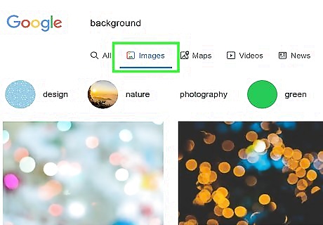 Go to Google images and search for backgrounds. Be sure to include the phrase "1280 x 720", "1920 x 1080", "3840 x 2160", or "7680 x 4320" as this is the best aspect ratio for a thumbnail. Also known as 16:9 aspect ratio, this size is optimized for desktop and mobile viewing. While this can be a good option if you have no photos of your own, you can also use a frame from your video or even take a new photo to ensure you have a good quality image.