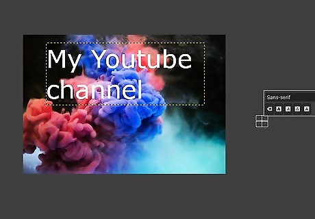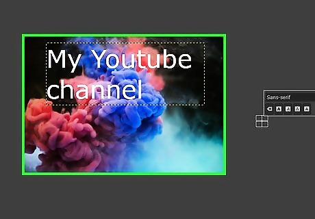 Type over the background what you want to have written on your thumbnail. Select the newly downloaded font in the text editing menu and type your video title (or caption) in the text field where you want the text displayed. Be sure to have your text away from the bottom-right corner of the image, as that'll be where the video's length will be displayed once it has been uploaded to YouTube. Do not put it too close to the edge, as the text may get cut off when displayed as a YouTube thumbnail.