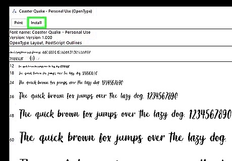 Click on the Install button. Once you have the font file open, you'll find the Install button in the top-right corner of the font preview menu.