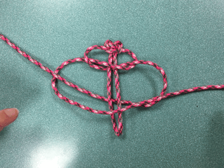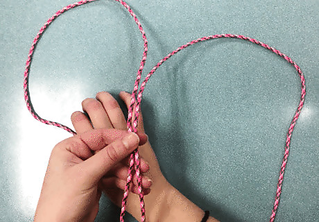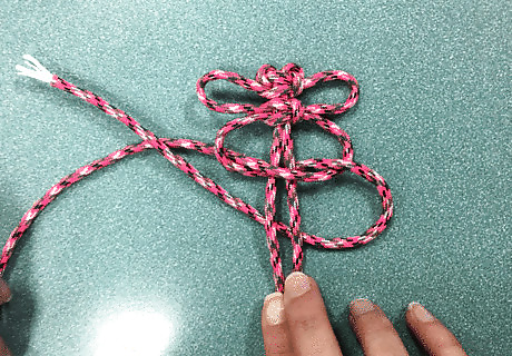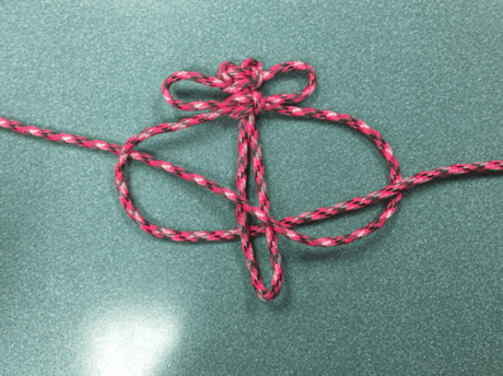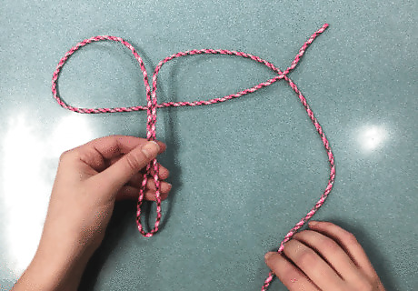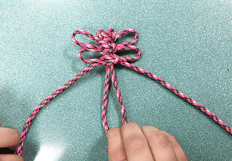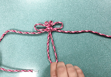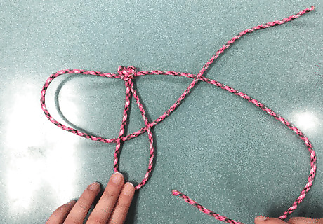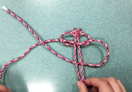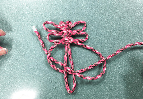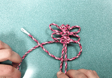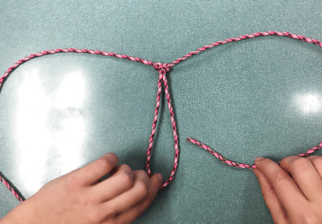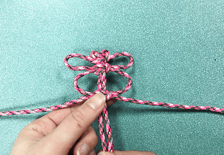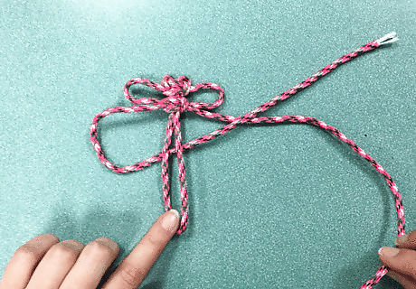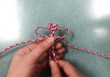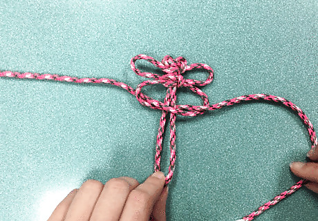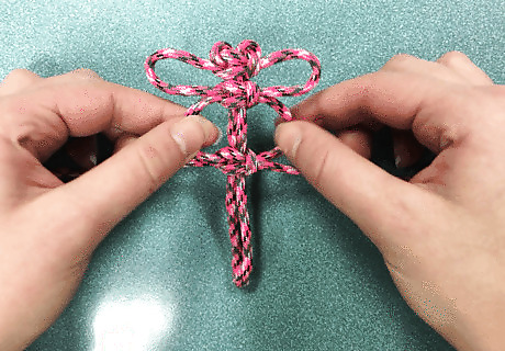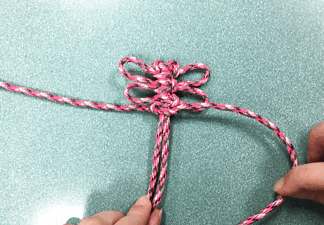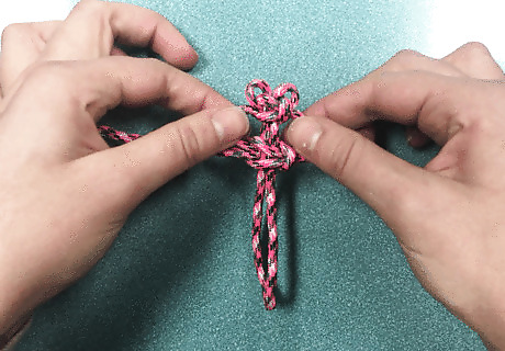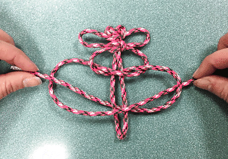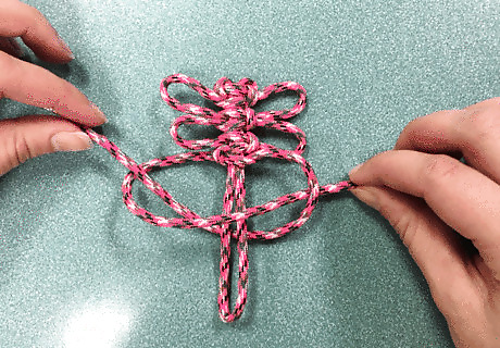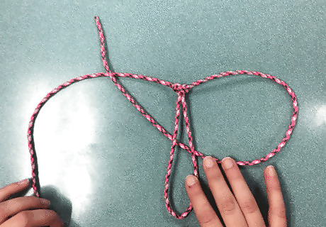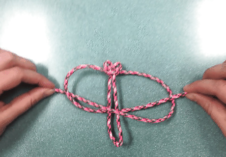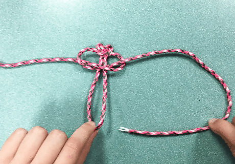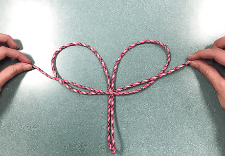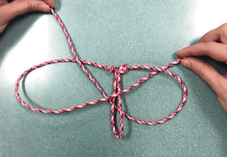Tighten. To make tightening easier, hold the body with your index and thumb while pulling one end at a time to tighten. When the loops get small, you can let go of the body and use two hands to fully tighten. Troubleshooting: Make sure the strands of the body do not become twisted (look at the last picture to compare before moving on).