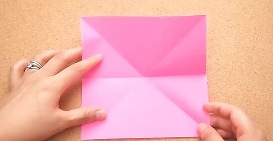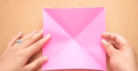 Fold, crease, and unfold the paper diagonally again, but this time the other way.