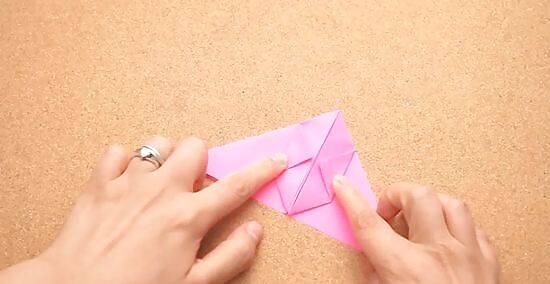 Take the sides of the diamond and fold them in so that the points are touching the center of the diamond.