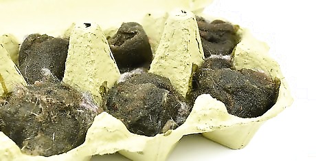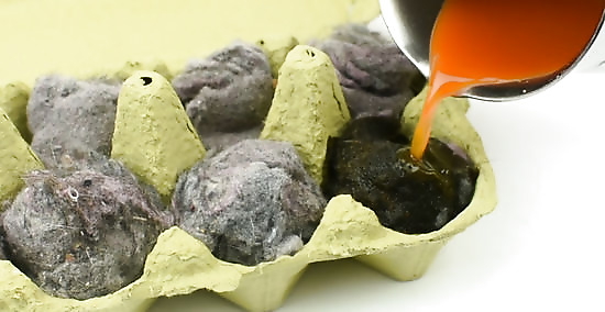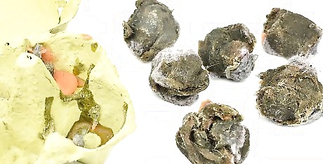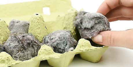Remove the lint balls from the egg carton. After the lint balls have cooled, remove gently pull them from the carton. Take care not to break any of the wax covering them. If you notice any lint balls with less wax than the others, put them back in the carton and add some more.