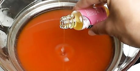 Melt wax and scent cubes or essential oils in a double boiler. Start by filling the bottom pot with water. Afterward, place your wax into the top pot, cover the bottom pot with the top one, and place your double boiler onto your stove. Turn the heat to high. Now, stir the wax every minute or so until it melts. If you'd like, add some scent cubes or essential oils for a nice smell. Leave the lid off the top pot that holds the wax. You can also make a double boiler by putting your wax in a soup can or mason jar and then placing this jar into a pot of boiling water. Just make sure the water isn't high enough to get into the can or jar.