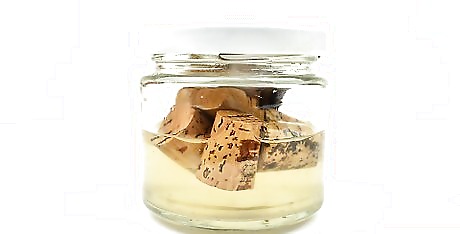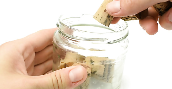 Fill a glass jar with wine corks. Place as many corks as you can into the jar. Just make sure to drop them in—don't stuff them—to make it easy to remove them when you need to. Use a glass jar of any size. Just make sure it has enough room for your wine corks!