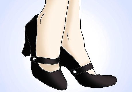 Add the perfect shoes. High heeled Mary Janes (with thick heels) are ideal. If you don't have those, anything that wraps around the ankle (so your shoe doesn't come flying off when doing the Charleston) is good. Stilettos weren't super common back in the day -- they're also not great for dancing in. Only go for stilettos as a last resort and if you're confident you won't trip!