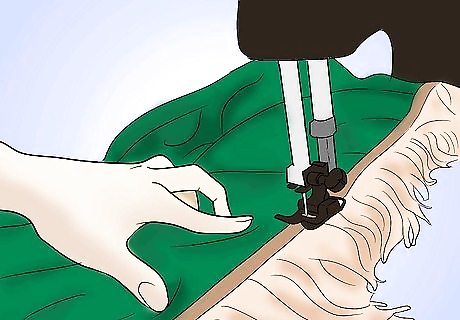 Start sewing the dress. For the top row, turn the dress inside out. That'll make it a lot easier. It'll also be much, much easier if you use a sewing machine. Try on your dress. If anything isn't hanging right, go back and adjust. Even though it will take more time, you'll be grateful you did.