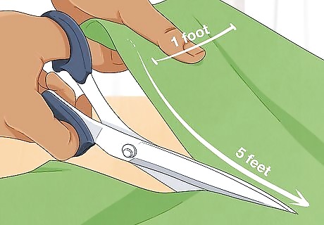 If you bought more than the minimum amount of fleece, cut 3 pieces of fleece with fabric scissors or a rotary cutter and a self-healing mat. They should be 5 feet (1.5 m) (1.5 m) long and 1 foot (0.30 m) (0.3 m) wide. You can easily make a themed scarf by using red, white and blue for the fourth of July or red, green and white for Christmas.