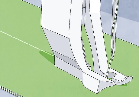Place the top, middle section of the fleece beneath the presser foot. With a close stitch, sew down all 5 feet (1.5 m) (1.5 m) of fleece. Take care to sew straight and evenly, with a back stitch on both ends.
