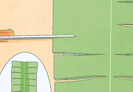 Lay the fleece strip on a craft table. Cut a slit in the side of the fleece every 1 inch (2.5 cm). Make sure to stop just before the center line.