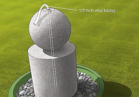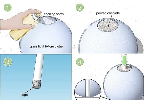 Build the ball. Get a glass light fixture globe, spray the inside with cooking spray and then fill it to the top lip with concrete. Tape off the end of a PVC tube and shove the taped end down through the center of the ball so that it sits snugly against the glass. Tape it in place until the concrete sets.