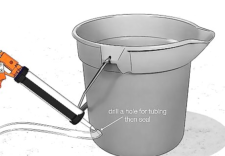 Create the connection. Puncture a similar 1/2" hole in the side of pail thread the end of the tubing through it so that the tube ends in the pail and seal the hole similarly to how you sealed the tub.