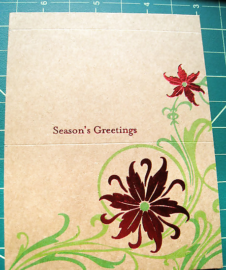 Cut the card along the crease or just in front of it. You will use just the front "cover" of the card for this project.