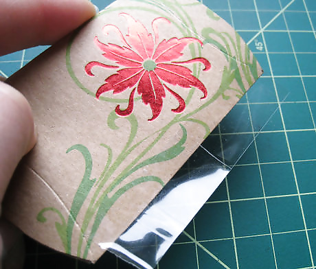 Fold the ends in along the scored curves to hold the gift in place and finish the pouch.