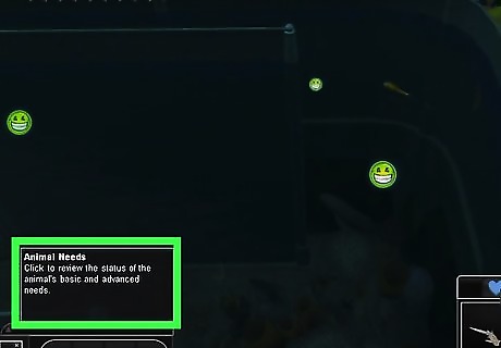 Click on the animal you've placed in the exhibit, and you will see a zoo keeper face on the right of the small box that pops up in the bottom right corner of your screen. Click on the face, and it will tell you what the animal wants in its cage. Follow the instructions to make your animal happy.