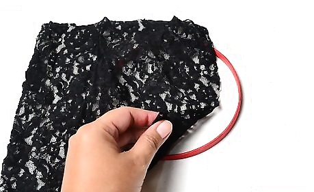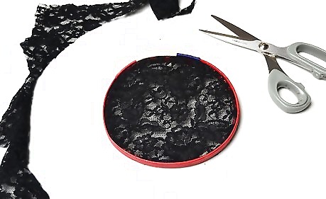 Cut a piece of lace or tulle a few inches larger than your hoop. You will trim off the excess fabric after you put the hoop back together.