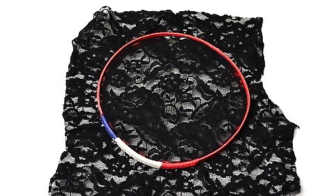 Place the upper hoop on top, and tighten it. If you took the knob and bolt off, you will need to put them back in. Place the screw part of the knob through both holes on the metal clasp. Once you have it through, place the bolt at the end of the screw. Start tightening the knob and bolt until the outer hoop closes and you can't tighten it anymore.