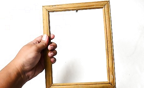 Find a wooden frame and take out the backing and glass panel. You can discard the backing, but save the glass panel. You will be using it to trace the plastic canvas/mesh later. You can use a plain frame, or an ornate one.