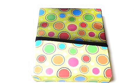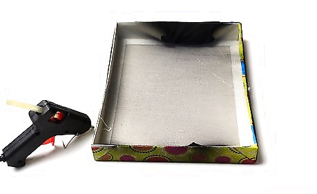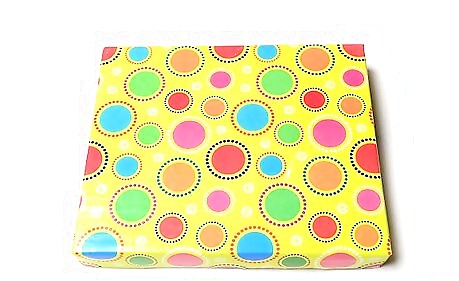Wrap a box lid with a colorful piece of wrapping paper. Secure the paper under the lid with wrapping paper. If the lid is small enough, you can use scrapbooking paper instead.