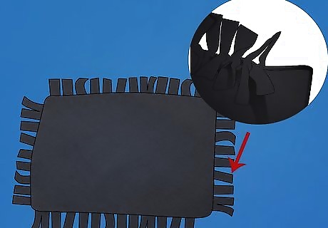 Tie the remaining strips together. Once you've inserted the pillow or stuffing, tie together the remaining strips. Remember to double-knot the top and bottom strip on each side. Once you've finished knotting the strips, your no-sew pet bed is complete.