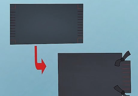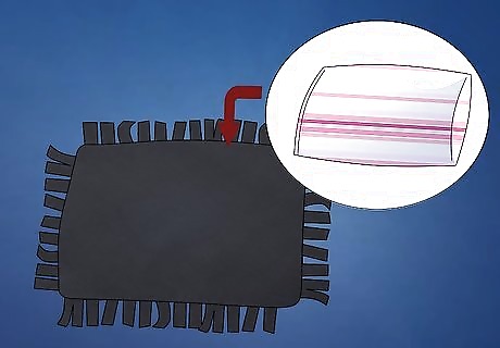 Create corners. You will need to create four corners for your bed. To do so, cut out 4 by 4 inch squares on each corner of your rectangle. To close the corners, take both the bottom on top fringe on one side of the corner. Then, take the bottom and top fringe on the other side. Tie these four fringes together in a single knot. This will close off the corners, preventing stuffing from leaking out later on.