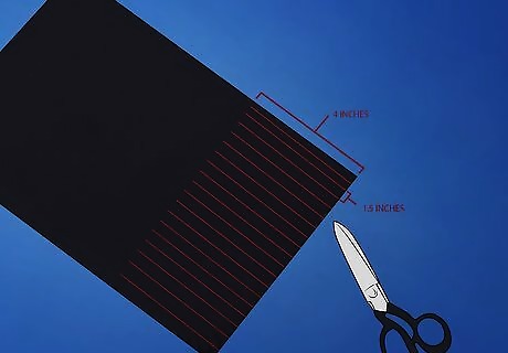 Cut out strips. Once you have your fleece cut into rectangles, you can begin trimming the sides of the fleece into strips. Remember, you'll be tying the strips together instead of sewing in order to assemble the blanket. Move around the sides of the fleece, cutting out strips of fabric 4 inches long and about 1.5 inches apart from one another. Depending on the thickness of your fabric, you may need sewing scissors. Regular craft scissors may not work to cut through fleece fabric.