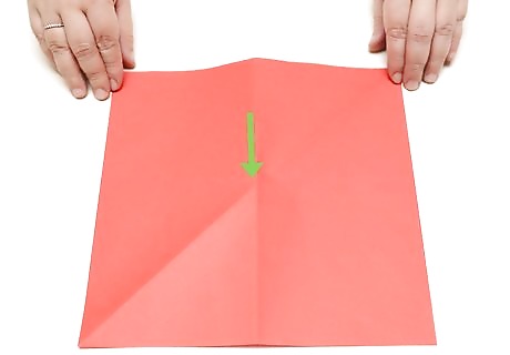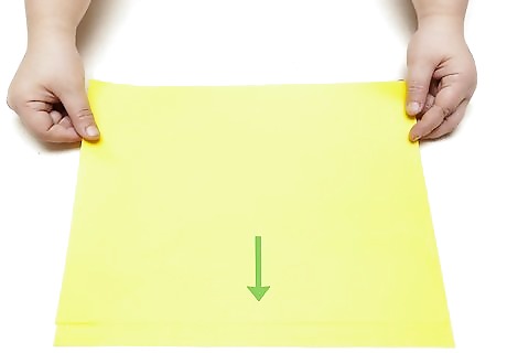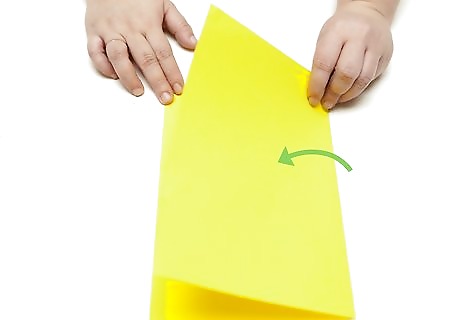 Fold your paper in half. Lay your paper out on a flat surface, and fold the length of it in half. Make sure that you have folded it in half evenly. Inaccurate folding at this early stage will botch the entire craft. It helps to go over your fold thoroughly. Run your finger over the crease to press it down. You should try lining up the corners of the paper together to get a more precise fold.