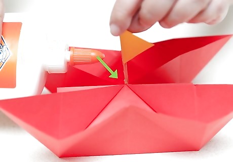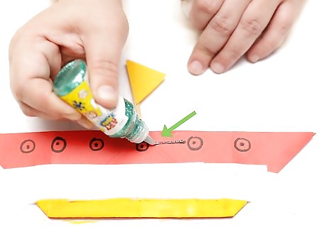 Glue on extra pieces. Whether you're making a full-on battleship or a little tugboat, almost all boats carry equipment. Radar, extra sails, cannons and top decks are a few ideas of things you might add to your vessel. Anything that cannot be drawn on directly should be added by gluing or taping light cardboard onto the top. Cut out pieces according to your idea and attach them gently to the boat. Make a point of keeping them centered on your boat. Excess weight could result in your boat getting capsized if you want to make it seaworthy. You can do this to any boat design, regardless how advanced or simple it is.