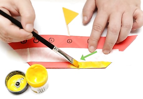 Paint different colors for the bottom and top. Most real-life ships are painted different colors: one color for the top, and another for the bottom. Although you could conceivably paint your ship as many colors as you like, a simple two-color pattern should be perfect for a crafts boat.