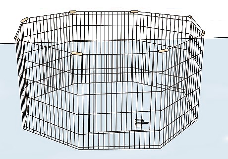 Use an exercise pen if you can’t use an entire room. Sometimes it just isn’t practical to use a whole room as a puppy playroom. Look around for exercise and play pens at pet supply stores. Check the manufacturer’s directions to ensure that you pick an exercise pen that is the best size and height for your type of dog. Then get your chosen exercise pen and set it up in a space that's large enough in your home. An exercise or playpen is ideal if you want to put the playroom away when it’s not in use.