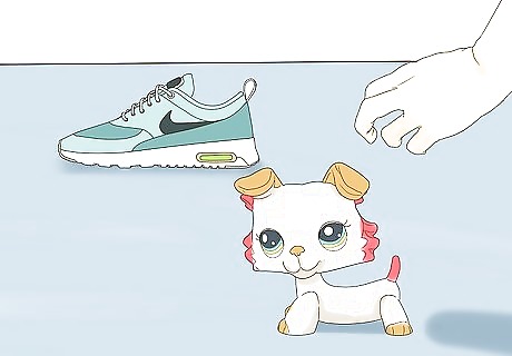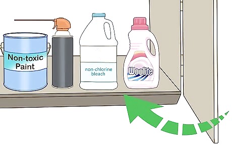 Keep all cleaning materials and food out of reach in the playroom. It’s important that your dog can’t access anything hazardous in the playroom. Place all chemicals and cleaning supplies in an entirely different room if possible. Also store all food in a place where your dog can’t reach it or be tempted by it. If it isn’t practical to completely remove all cleaning supplies and food from the playroom, place these items in a high cabinet with doors that close fully instead.
