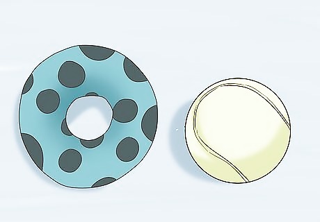 Keep chew toys in the playroom to keep your dog occupied. Providing plenty of fun and interesting toys will help your dog to stay entertained when it’s left alone. Get toys such as treat-ball toys or seek-a-treat puzzle toys, as these help to keep your dog occupied for long periods of time. Rotate the toys that your dog has access to in the playroom each week so that it doesn’t get bored. Providing your dog with plenty of entertainment helps to prevent unwanted behaviors such as barking and chewing. It’s also a good idea to include your dog’s favorite toy in the playroom to help your pet feel safe. A favorite ball or a stuffed animal can be a great comforter for anxious dogs. Hollow toys such as treat balls or seek-a-treats can be filled with your dog's favorite snack. Your dog will learn how to work the toy to get the treats! Sometimes these toys can also be frozen to give your dog an extra challenge.