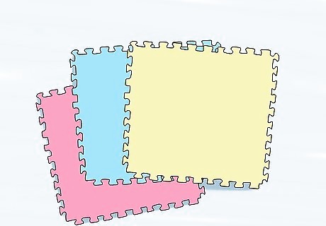 Place rubber or play area mats over slippery floors. The playroom needs to be safe so that your dog doesn't slip or fall over. If the flooring is made out of tiles, vinyl, hardwood, laminate, or a different type of very smooth material, it's best to cover the flooring with a mat. Get rubber or children's play area mats and cover the flooring entirely. Make sure that there are no areas uncovered where your dog might slip. Anti-fatigue mats are also a good option.