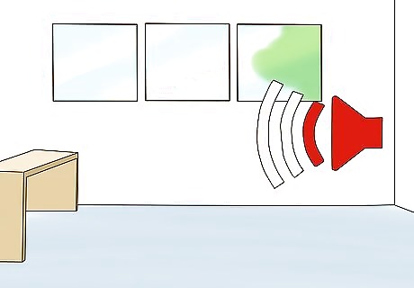 Use a TV or a radio in the room to help calm an anxious dogs. Although it sounds funny, TVs and radios can help anxious dogs to feel settled when they are left alone! Switch the TV onto a show with plenty of animals or just turn the radio on to provide some background noise. You can also purchase specialty TV and radio shows online that are designed to calm anxious pets. Alternatively, sound machines can also work well for anxious dogs. These can also help to block out any noises that your dog makes if you have neighbours in close proximity.