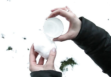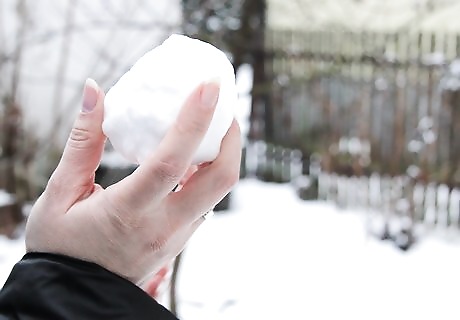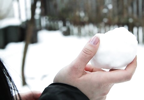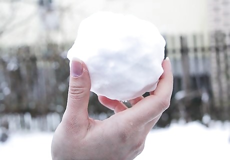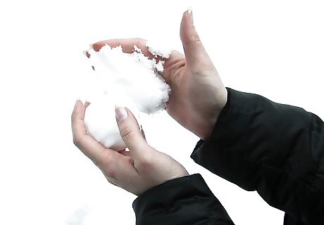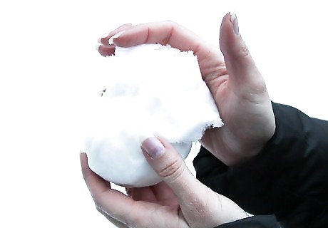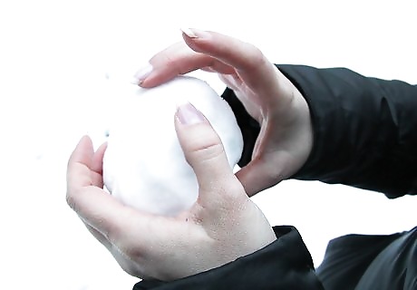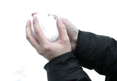 Form the core of your snowball. Make your snowballs roughly the size of a baseball. Cup your hands, place them in the snow, and bring them towards each other. Squeeze the snow together to start compacting the snow into a snowball. Don't make your snowballs too large, they can be hard to throw accurately. Wear gloves instead of mittens to allow you to more accurately form the snowball. Try using your bare hands, allowing your body heat to help form the snowball.