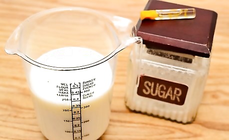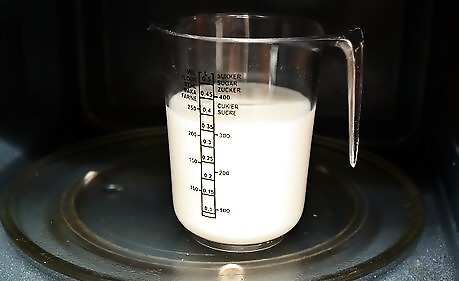 Measure the milk and put it in a heat and microwave safe measuring cup or mug.